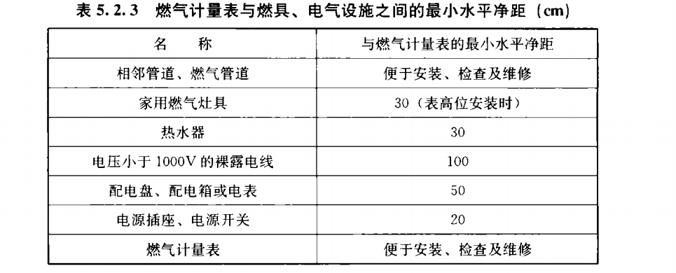 8、燃氣表與燃具、電氣設施小于表內最低要求的