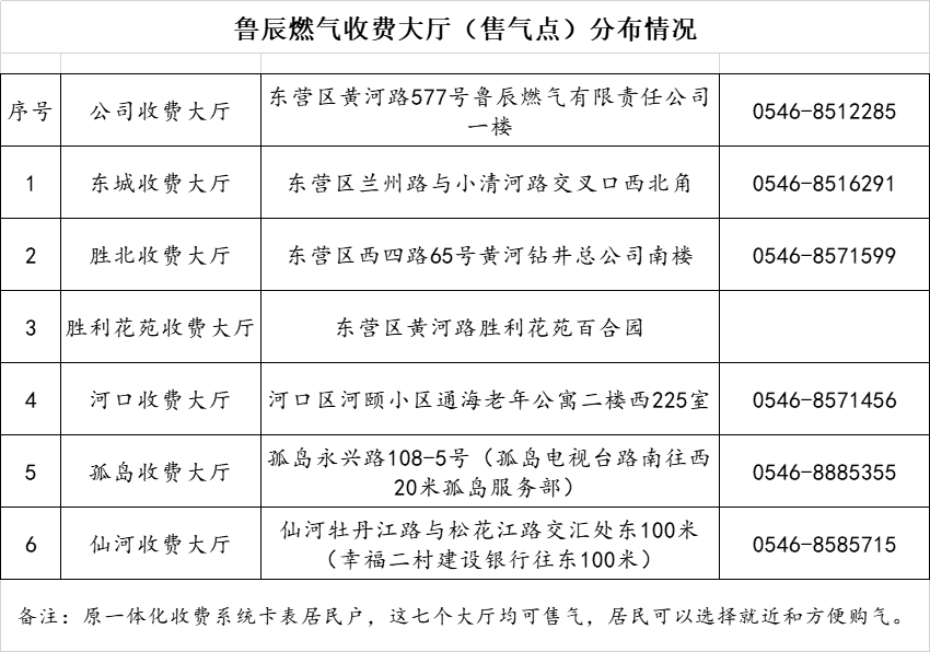 魯辰燃氣有收費大廳分布情況