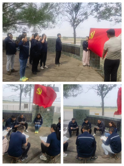 在黃河邊綠蔭下,黨支部書記張誠烘同志領誓帶領黨員重溫了入黨誓詞。支部黨員、積極分子團坐在紅旗下集體學習了《中國共產黨紀律處分條例》第一章和第二章。